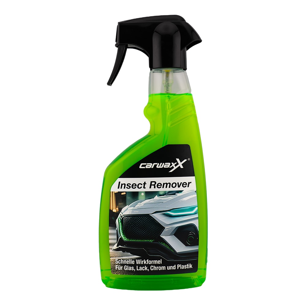 1. Spray carwaxX insektsfjerner direkte på overflatene som skal rengjøres (frontrute, grill, frontlykter osv.)