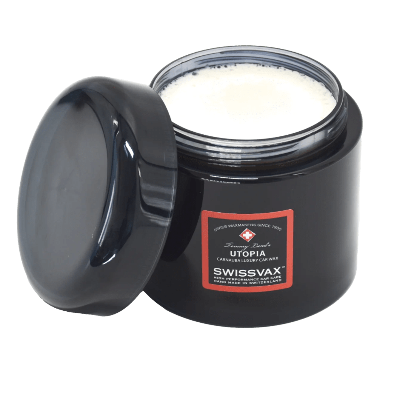 Swissvax Utopia by Tommy Lund er en moderne og innovativ voks som kombinerer en utsøkt glans med svært effektiv PTFE (Teflon) beskyttelse – noe som imponerer selv de mest erfarne bilpleierne. Voksen er spesialutviklet i samarbeid med Tommy Lund, en anerkjent detailer fra Bryne. Han er kjent i både Skandinavia og resten av verden for sitt arbeid med noen av de mest ekstreme sportsbilene.