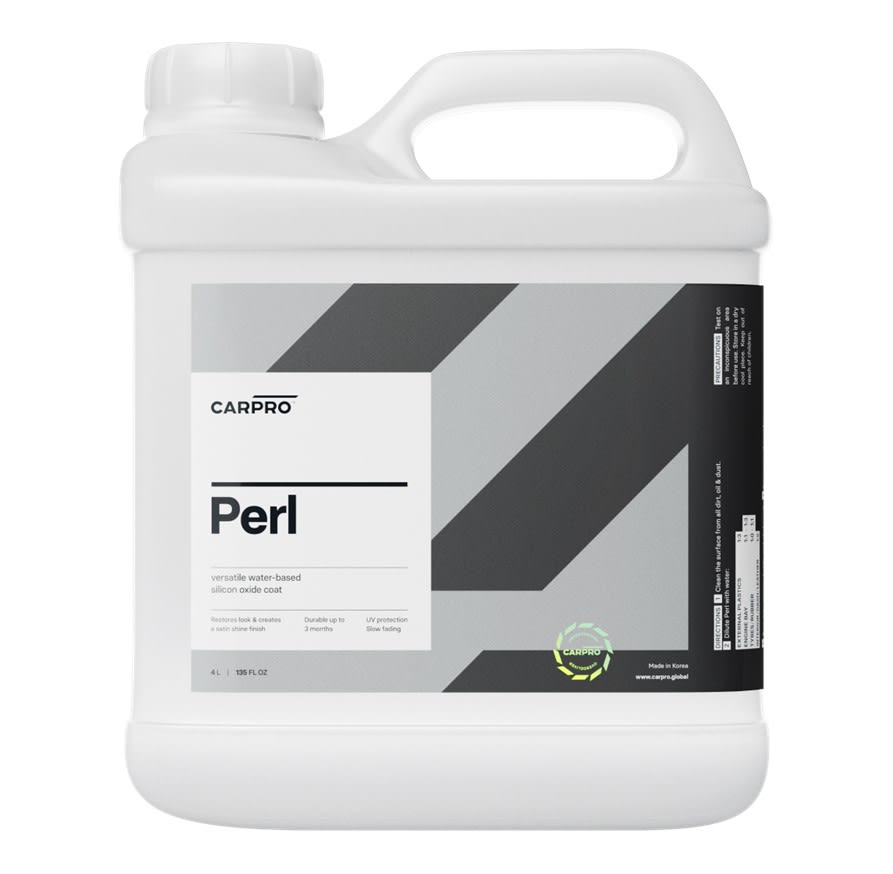 CARPRO Perl er en holdbar, vannbasert beskyttelse (coating) for plast, gummi og skinn som gir beskyttelse i opp mot 3 måneder. Den er trygg å bruke på alt av plast i interiøret og eksteriøret, gummi, vinyl og skinn. PERL har innebygde UV beskyttelse og har overlegne vannavstøtende egenskaper sammenlignet med tradisjonelle produkter til samme bruk.