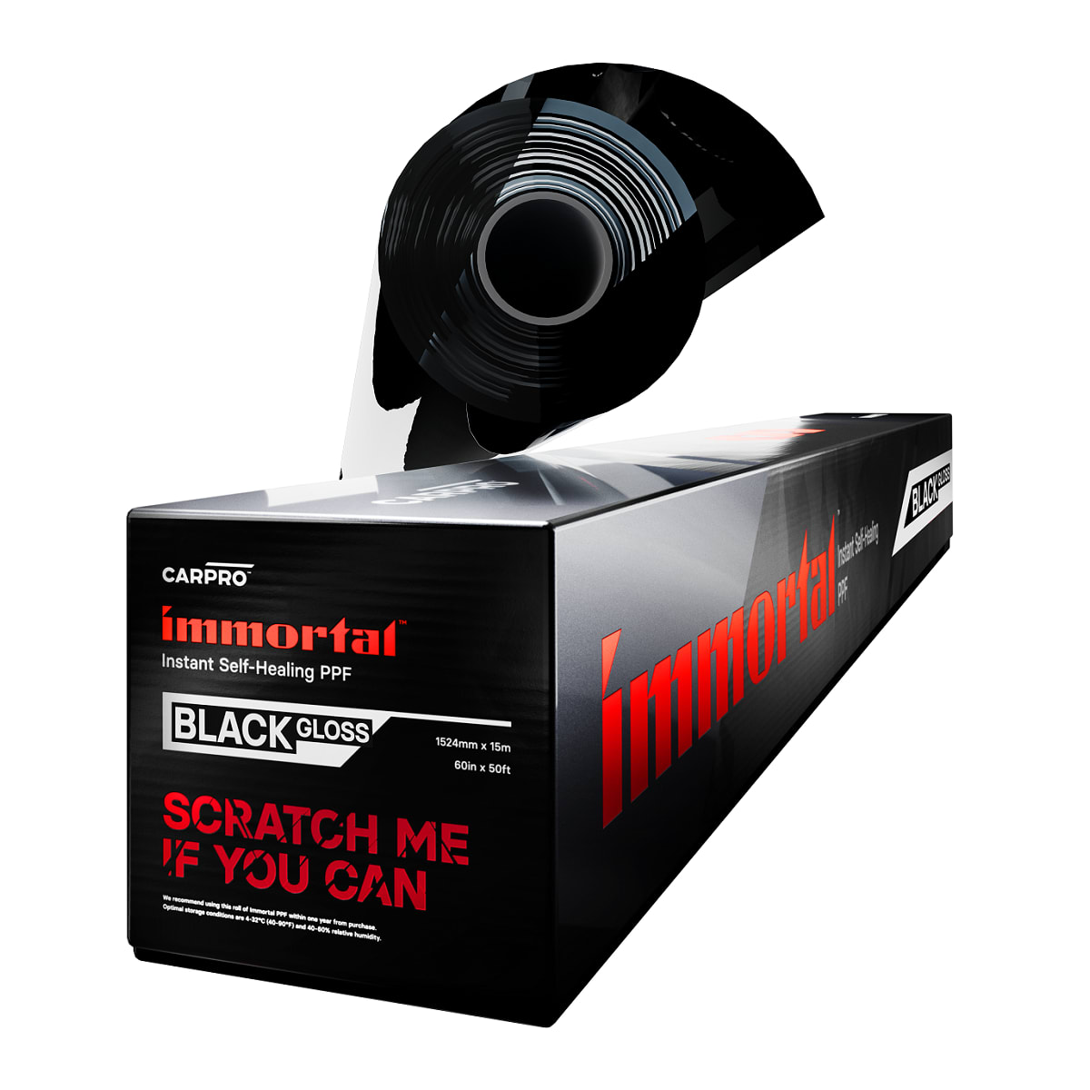 CARPRO Immortal PPF black glossy er en farget PPF som gir en nydelig svart finish og er en selvhelbredende PPF der riper umiddelbart forsvinner foran øynene på deg. Den er selvhelbredende helt ned mot -20°C. Ingen varme er nødvendig!