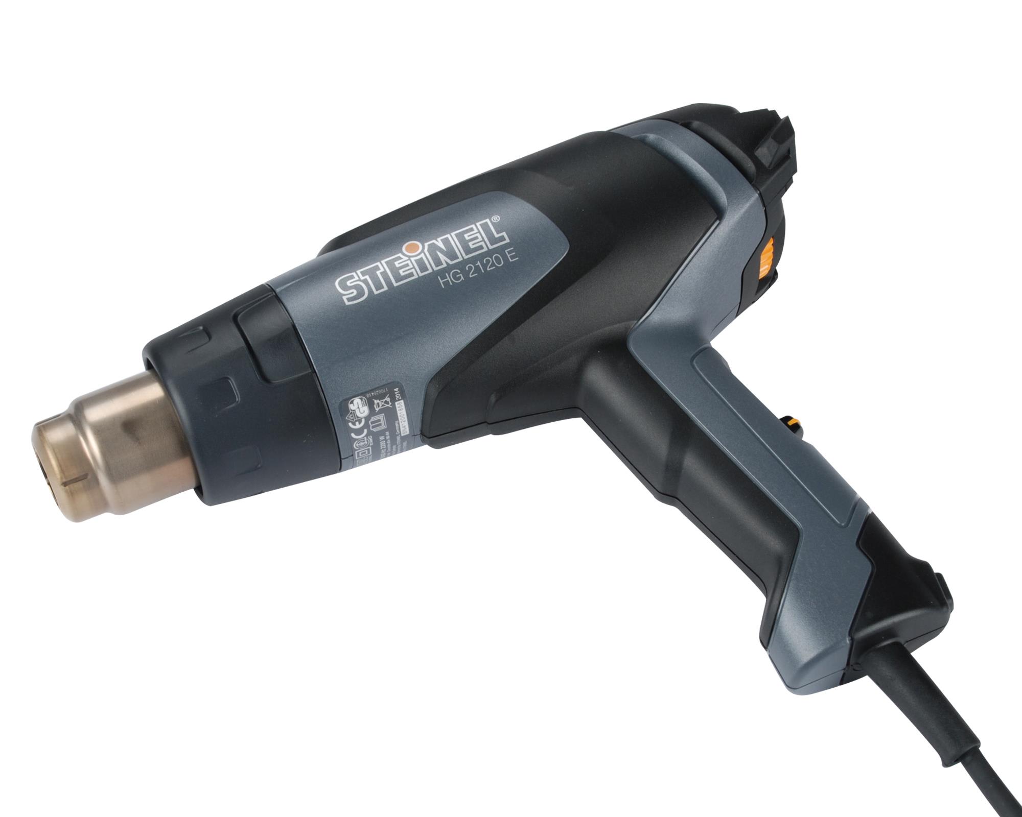 HG 2120 E med 7,5 m kabel. 2200 W, trinnløst justerbar temperatur fra 80 – 630 °C (9 trinn) og luftmengden kan varieres i 3 trinn fra 150 til 500 l/min. Perfekt for skiltmakere, solfilm og folie. Alle som driver med folie og solfilm trenger i utgangspunktet to ting: god plass og absolutt temperatursikkerhet. Derfor leveres Steinel er HG 2120 E med 7,5 m strømledning. Denne er ideell for enhåndsbruk som gir deg enda større fleksibilitet.